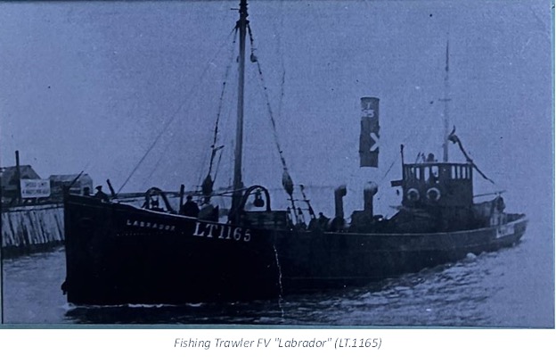 On 23 January 1915 the trawler Labrador, LT 1165, left Lowestoft for the fishing grounds. The trawler was due back in Lowestoft on Sunday 31st. The trawler was not seen again and it was presumed that the trawler had struck a mine and sank with all eight crew.