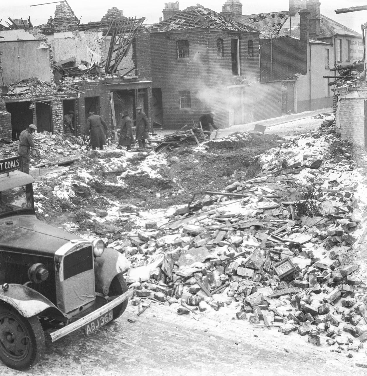 While convoys of lorries were still trucking the wreckage and rubble from the scene of devastation that became known as "The Waller's raid" in London Road North, Lowestoft, another deadly raid occurred. An alert had been sounded at 8.41 am, probably caused by German bombers seeking a convoy in the North Sea.